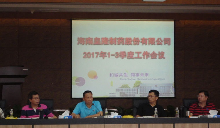 在這個寓意希望和豐收的季節(jié)里,海南皇隆制藥股份有限公司2017年前三季度工作報告分析會于14日在公司二樓大會議室召開,會議由陳益智總經(jīng)理主持,部門負責(zé)人及以上人員出席會議。