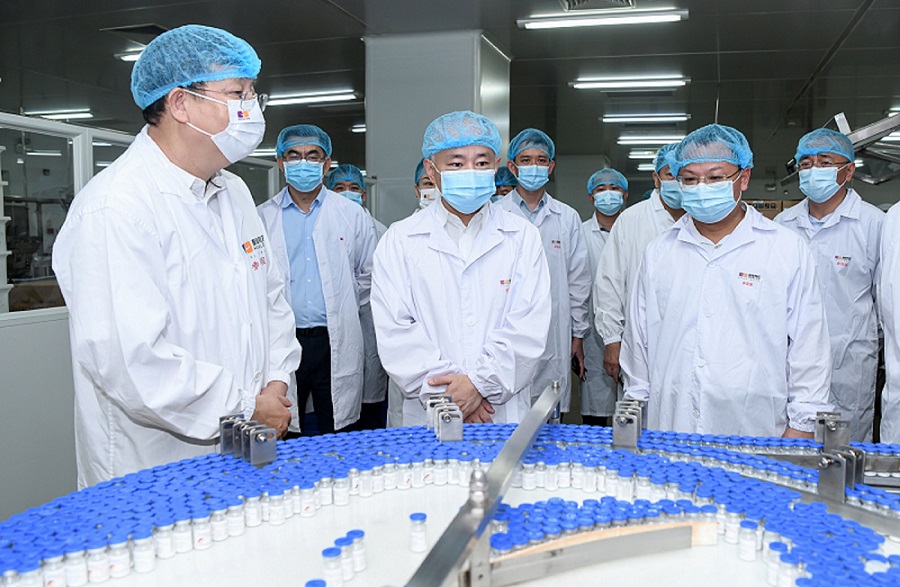 9月5日上午,??谑形睍?、市長(zhǎng)丁暉帶領(lǐng)市政府相關(guān)部門主要負(fù)責(zé)人來到皇隆制藥調(diào)研。