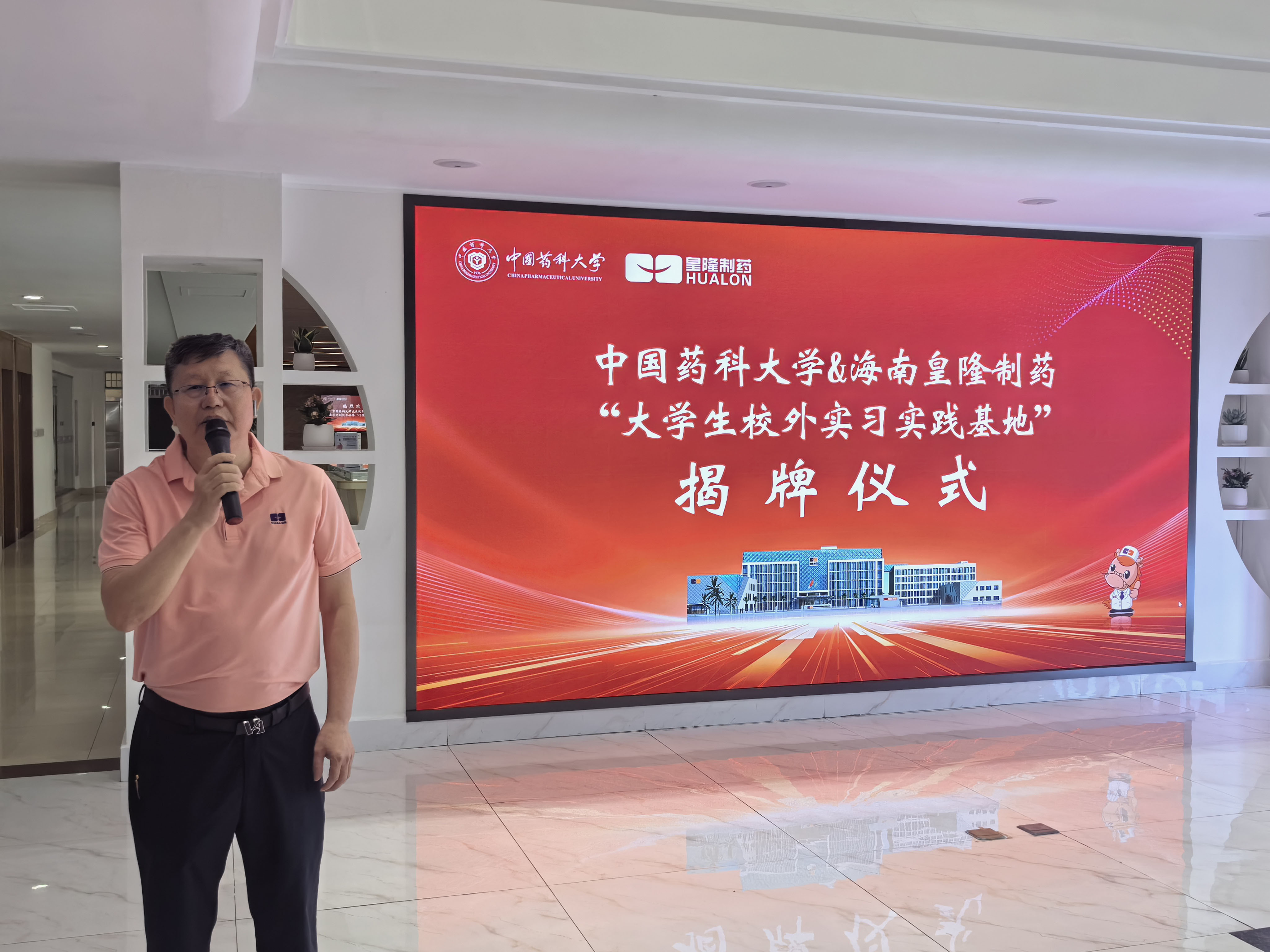 7月29日,中國藥科大學(xué)“大學(xué)生校外實(shí)習(xí)實(shí)踐基地”揭牌儀式在海南皇隆制藥股份有限公司舉行。中國藥科大學(xué)藥學(xué)院黨委書記張仕英與海南皇隆制藥股份有限公司董事長陳益智分別代表合作雙方揭牌。揭牌儀式由海南皇隆制藥股份有限公司常務(wù)副總經(jīng)理史江永主持。
